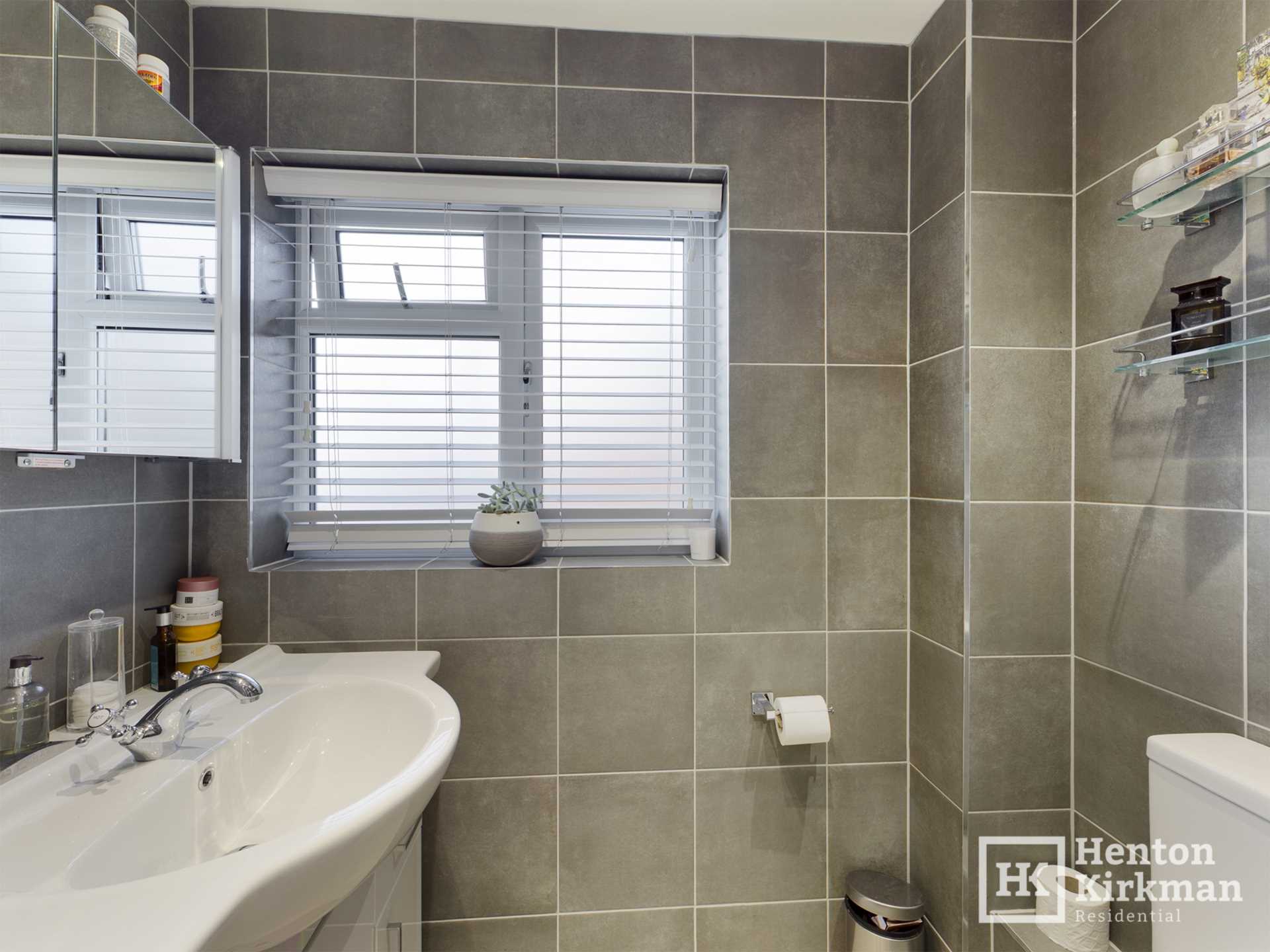 Attractive grey wall and floor tiles compliment and the front facing obscure glass window provides plenty of natural light.