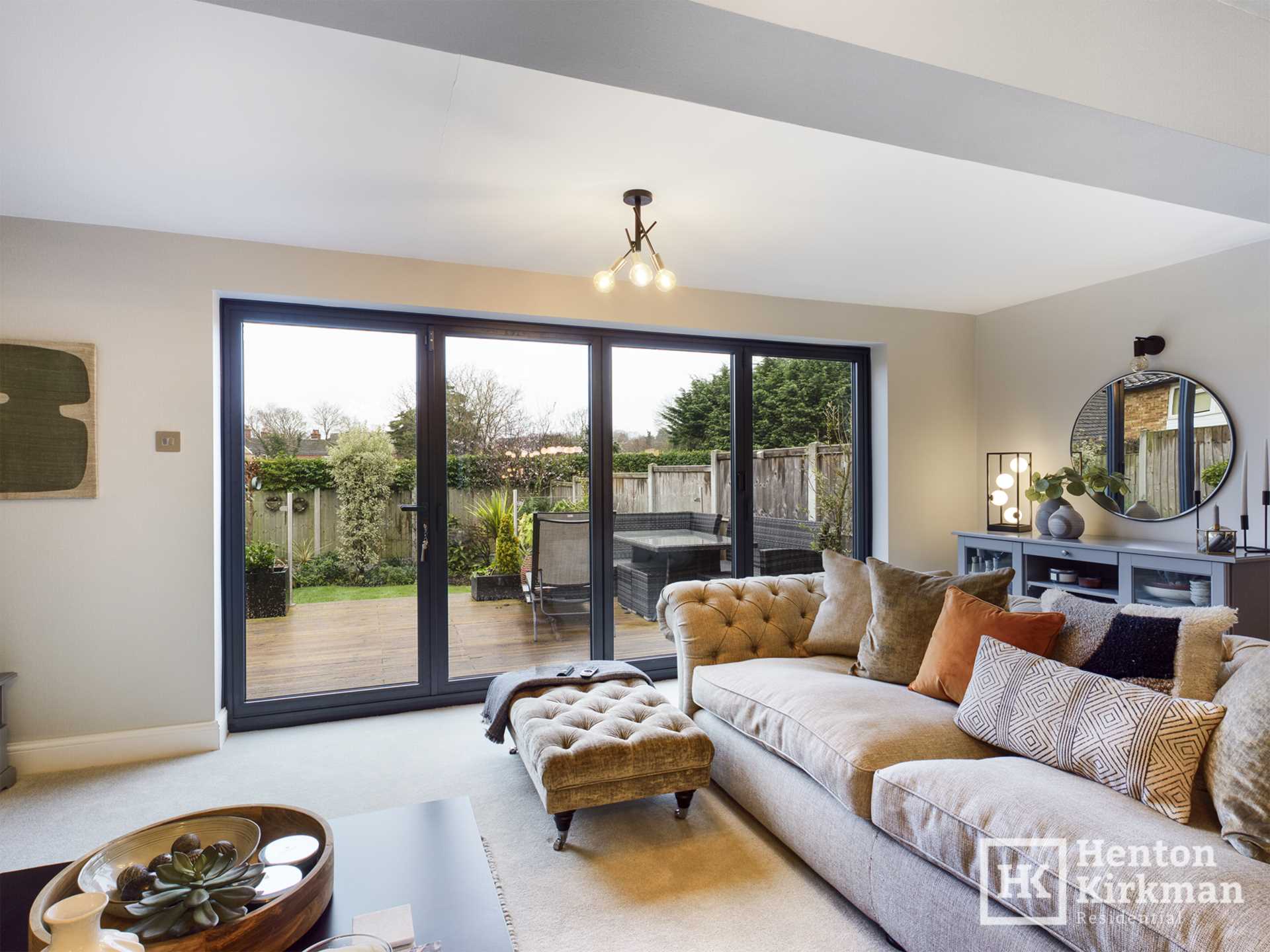 A full width extension has created this spacious living area which has bi-folding doors opening on the rear garden, these wide doors connect the room with the garden and bring in the warm and light afforded by the south westerly aspect.