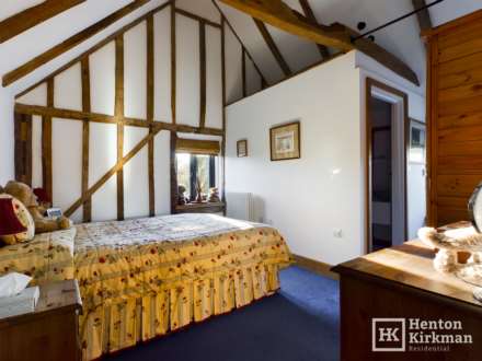 The twin of the other first floor bedroom, also enjoying a vaulted ceiling of nearly 14ft and a plethora of exposed beams including some which date back to the 16th century.